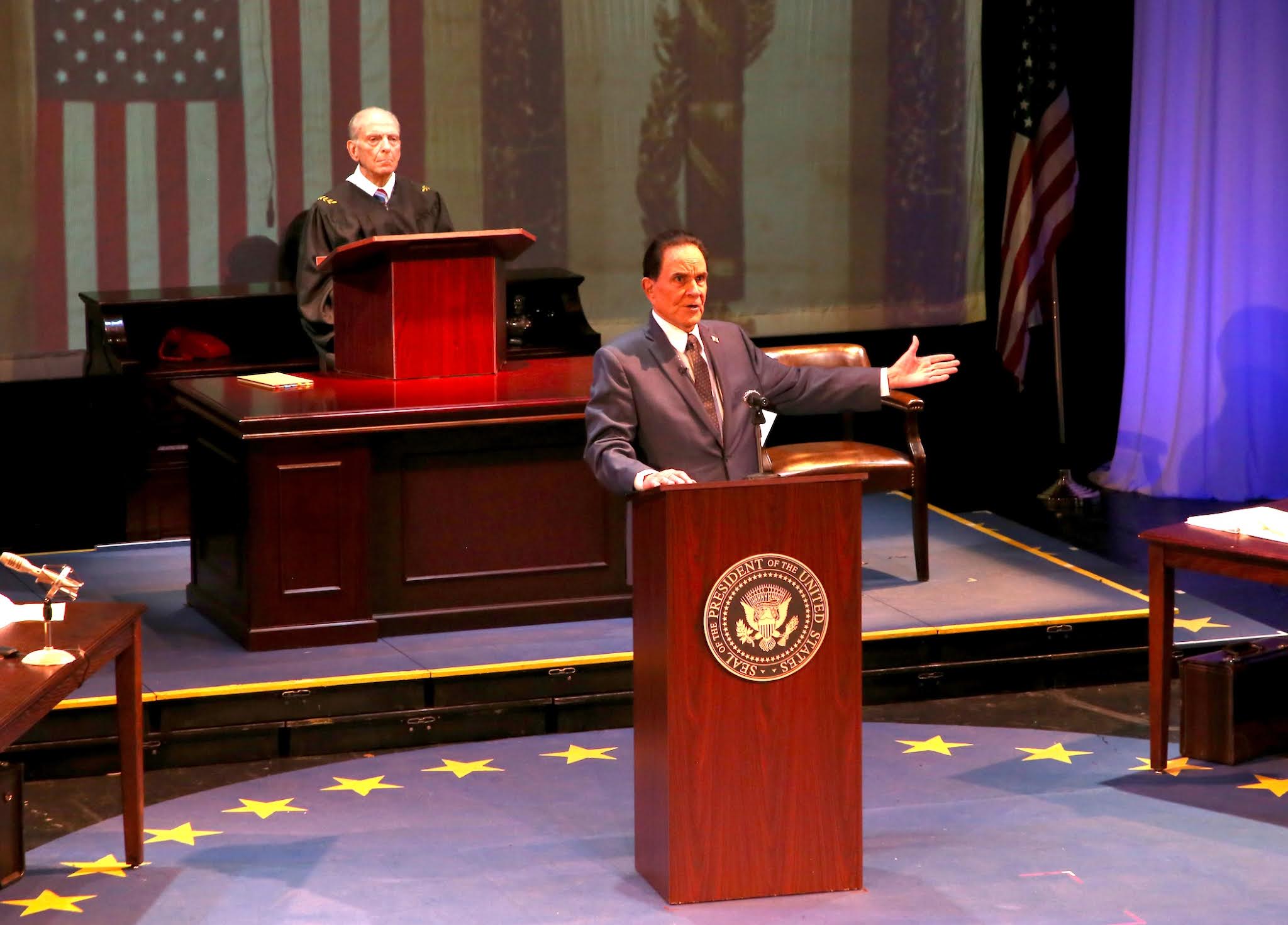 Bring on an imagined September 1974 impeachment trial presided over by Supreme Court Chief Justice Warren Berger (a delightfully acerbic Paul Caliendo) and prosecuted by Peter Rodino (Tom Gregory) and Phil Lacovara (Chris Lazzaro).